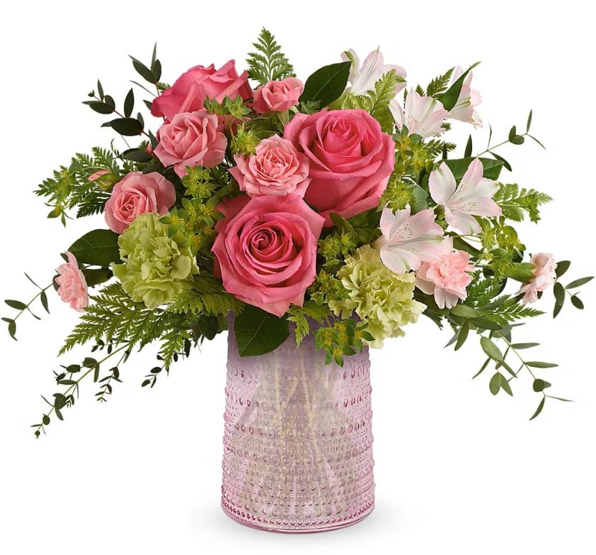 Cupid-19-vase-verre-rose-roses-oeillets Que du rose 59,99 $